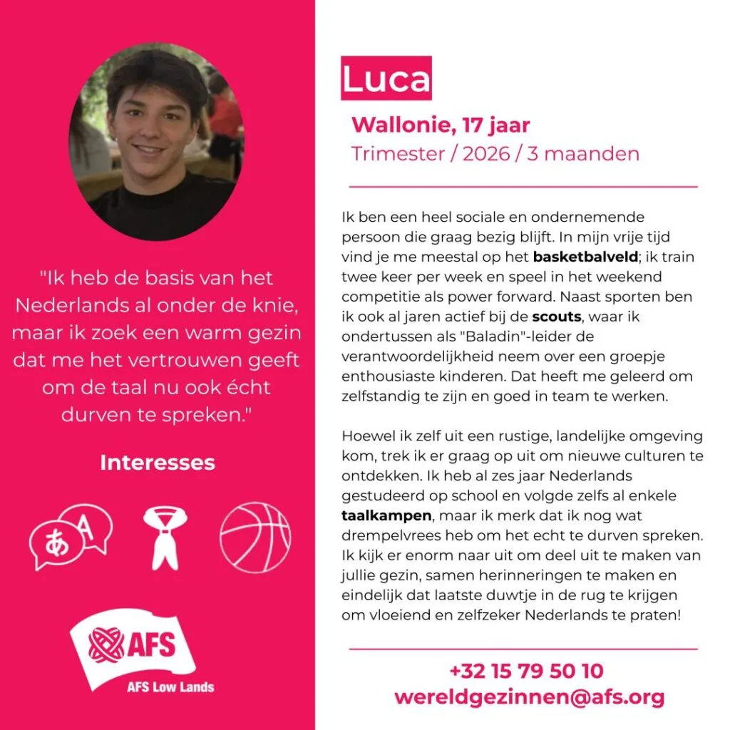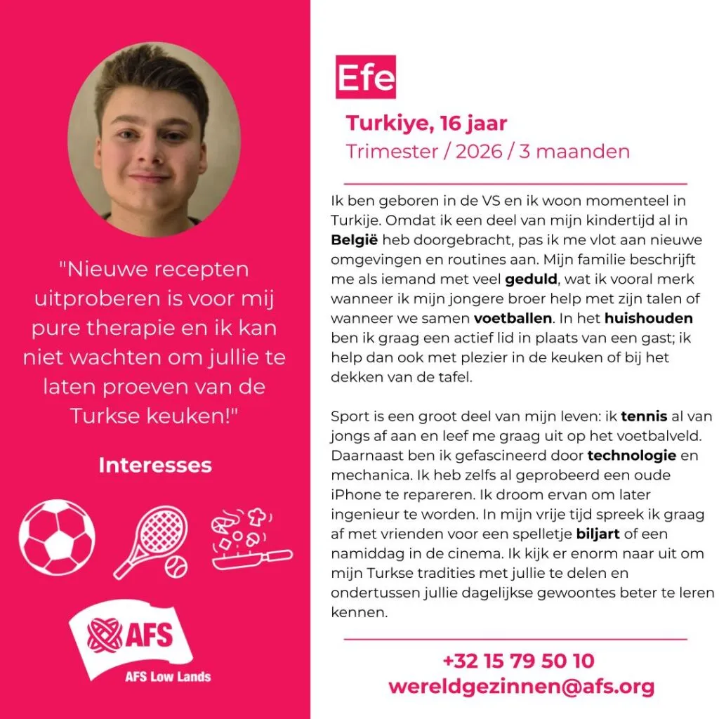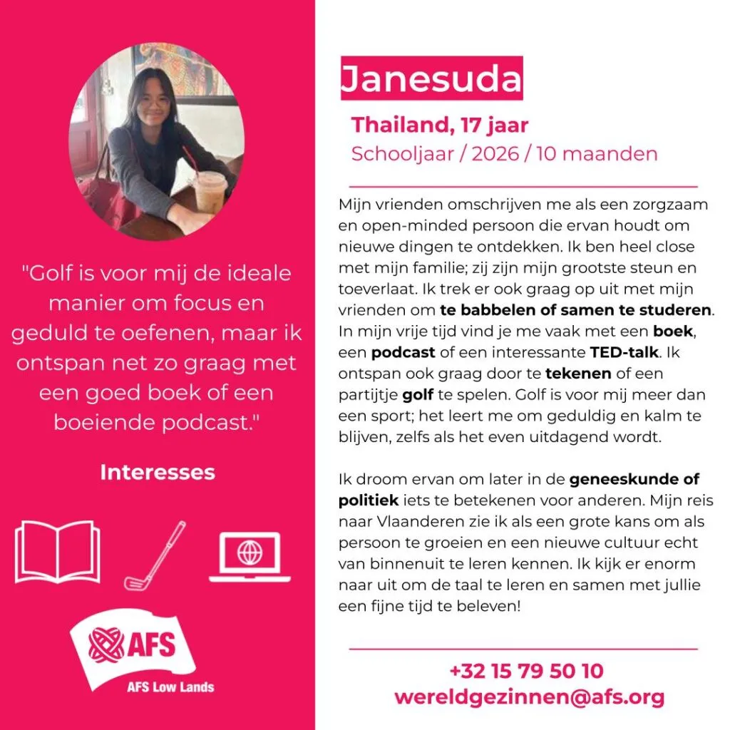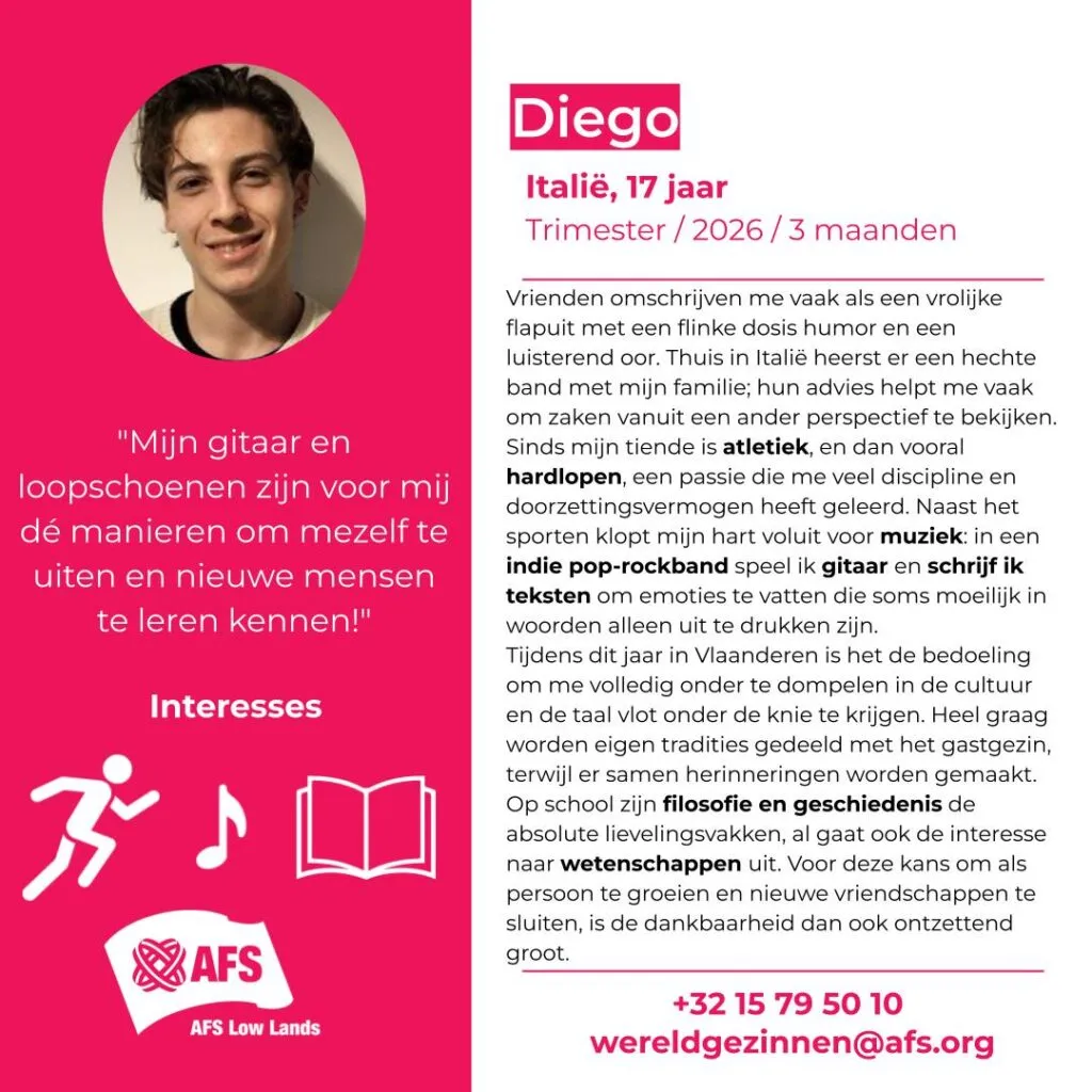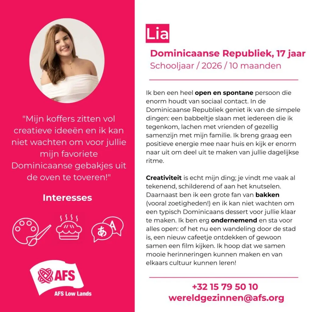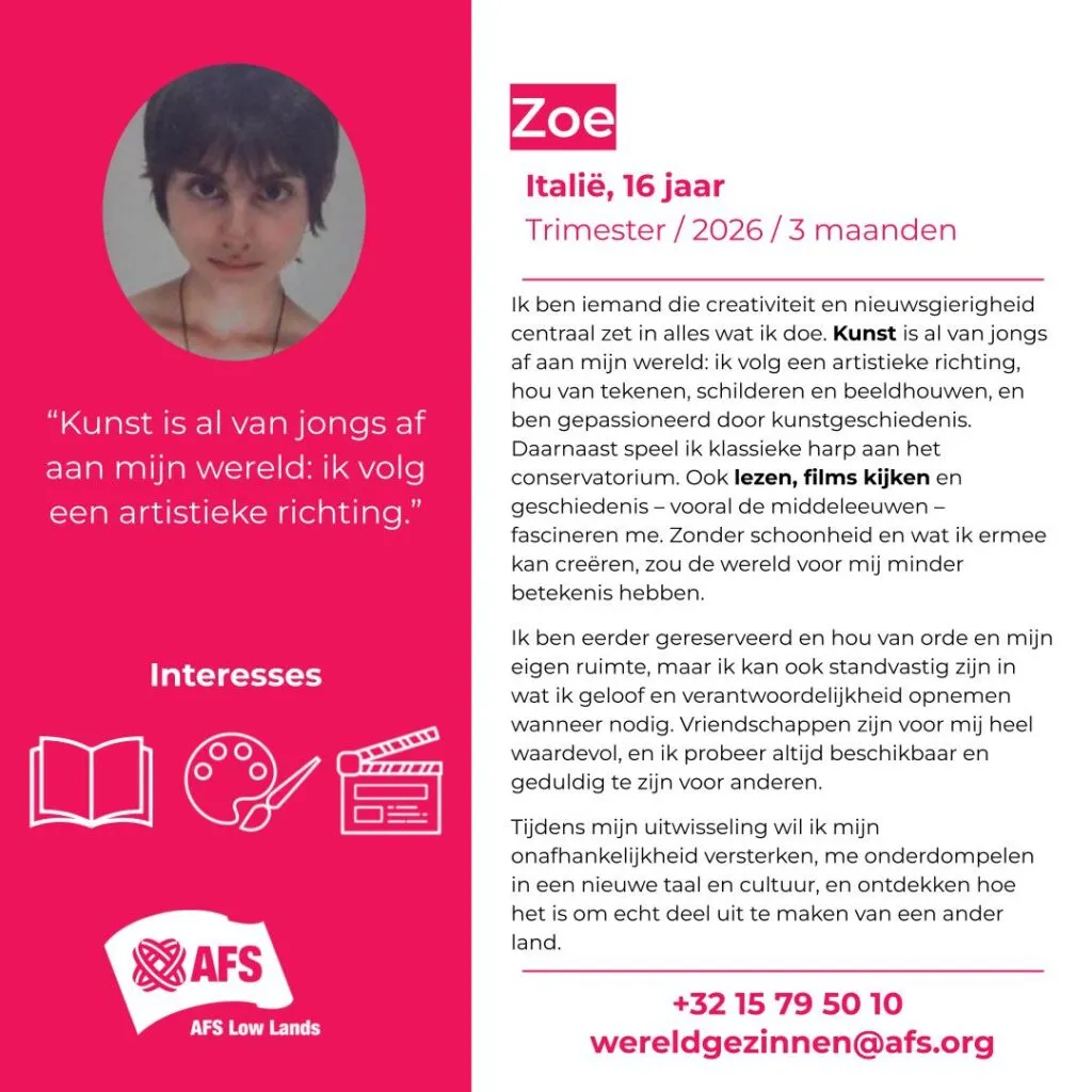 Enthousiast geworden? Neem contact op met het AFS-kantoor in Vlaanderen via 015/79 50 10 of [email protected].