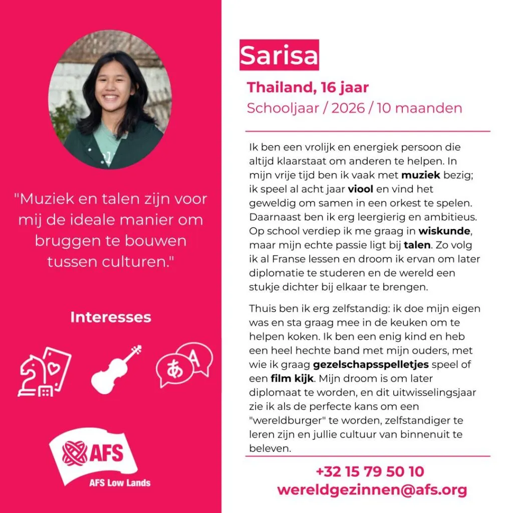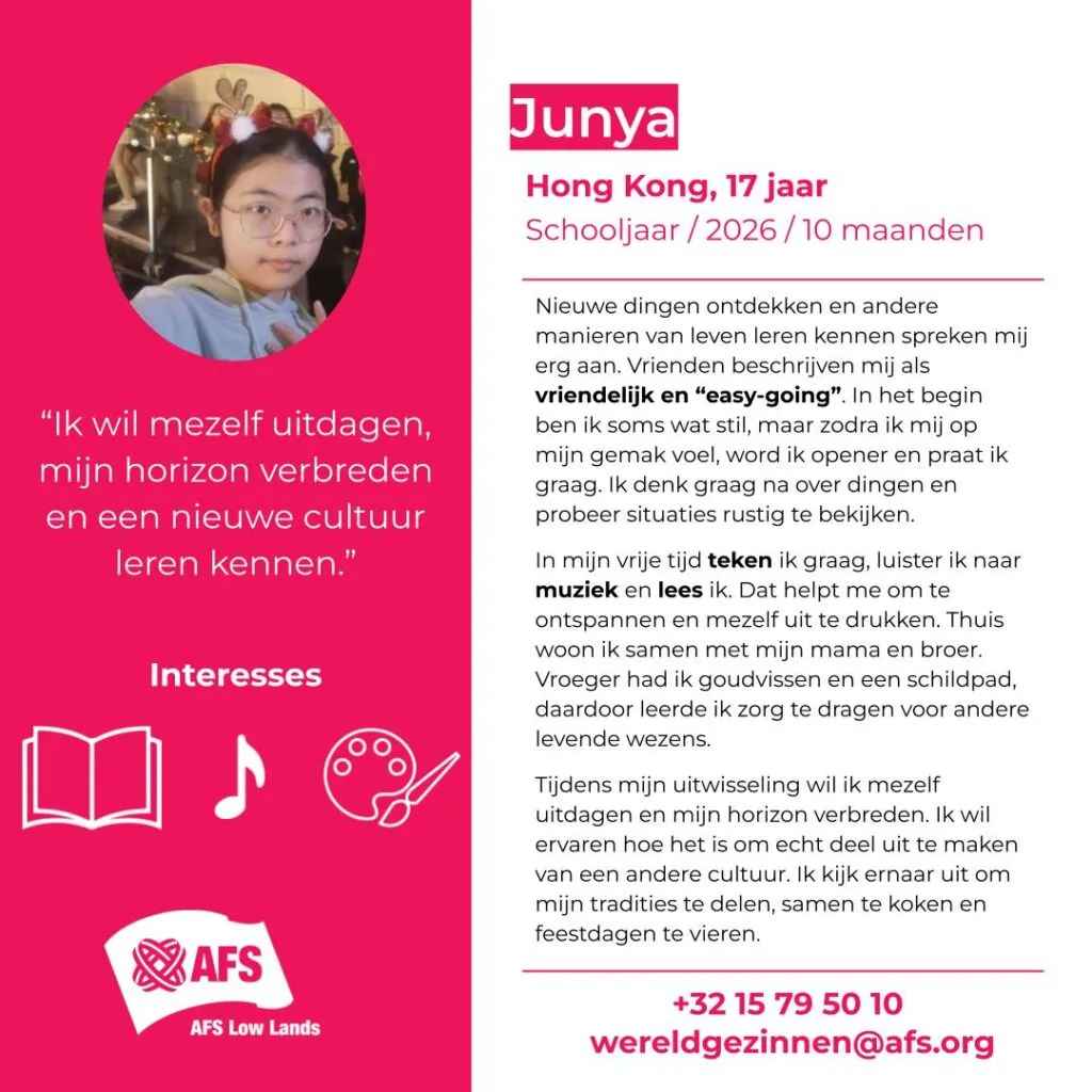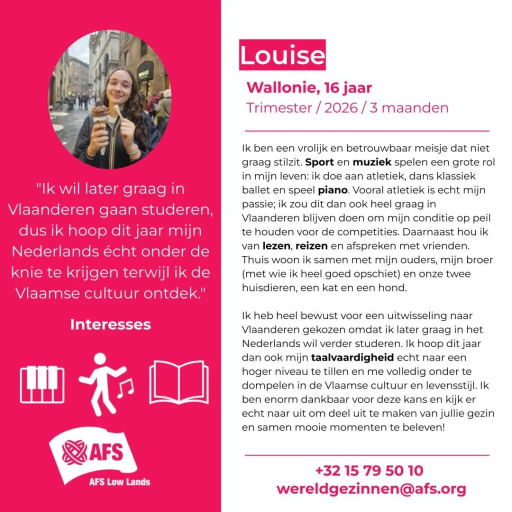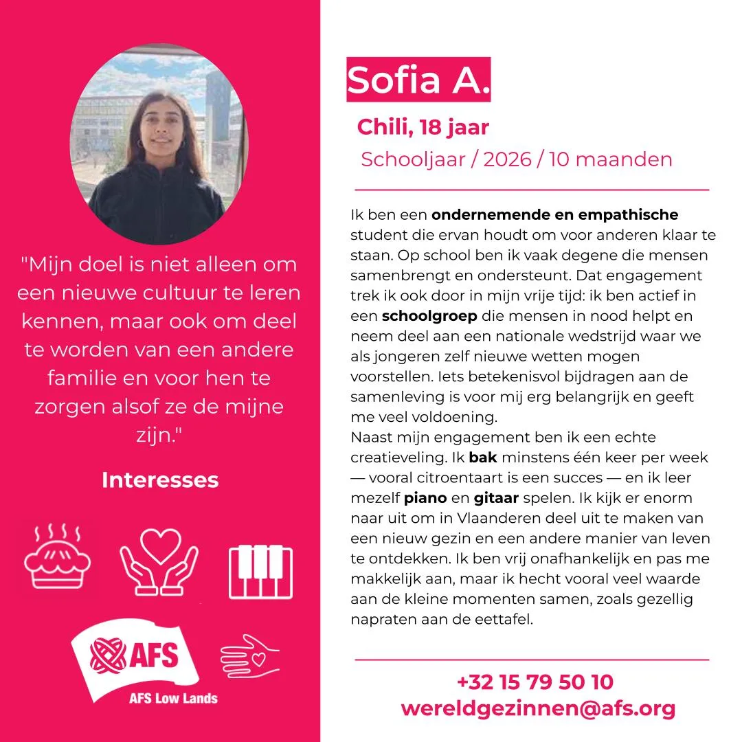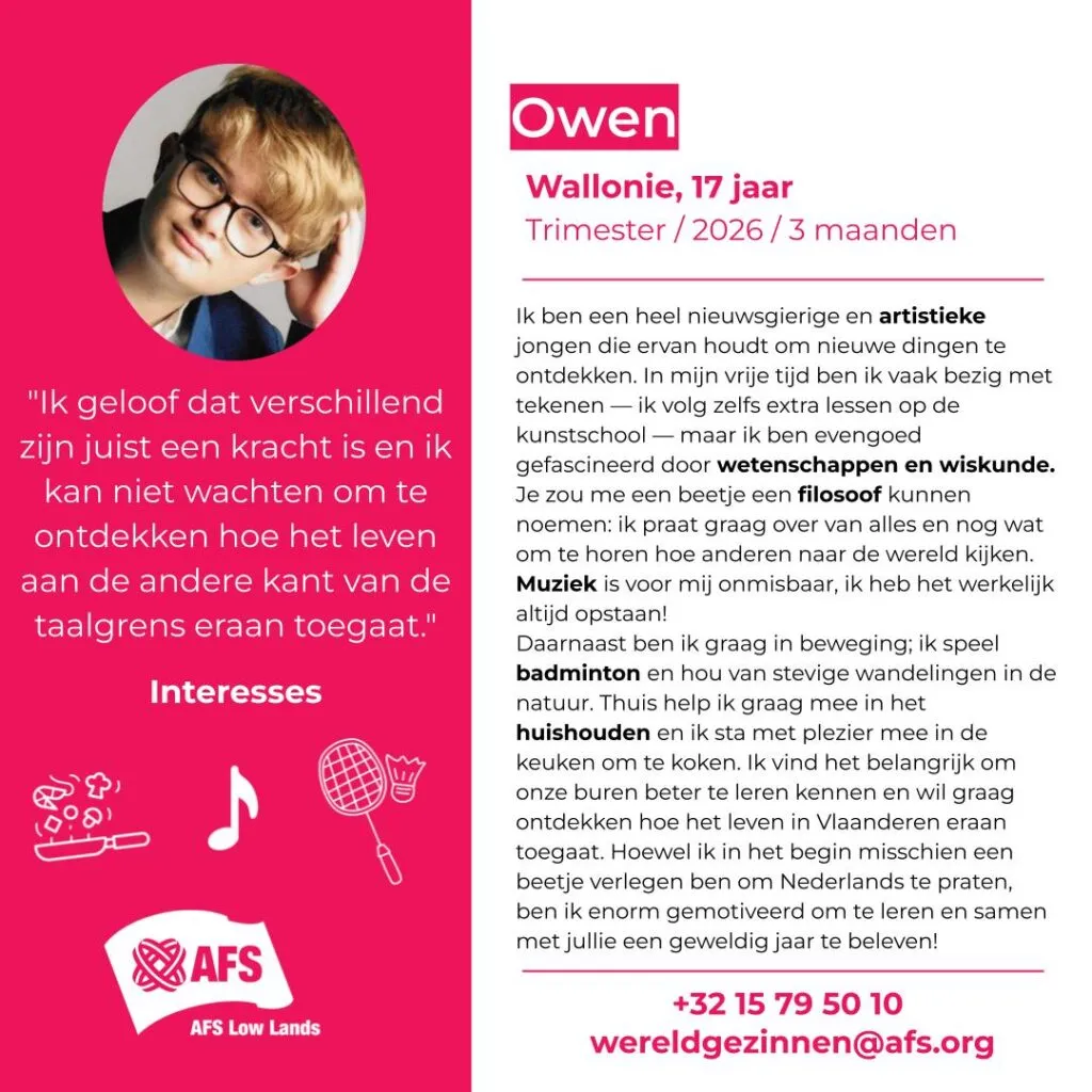 Enthousiast geworden? Neem contact op met het AFS-kantoor in Vlaanderen via 015/79 50 10 of [email protected].