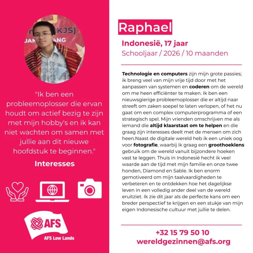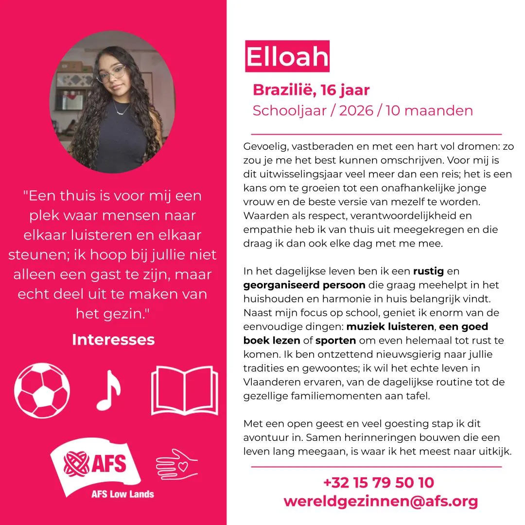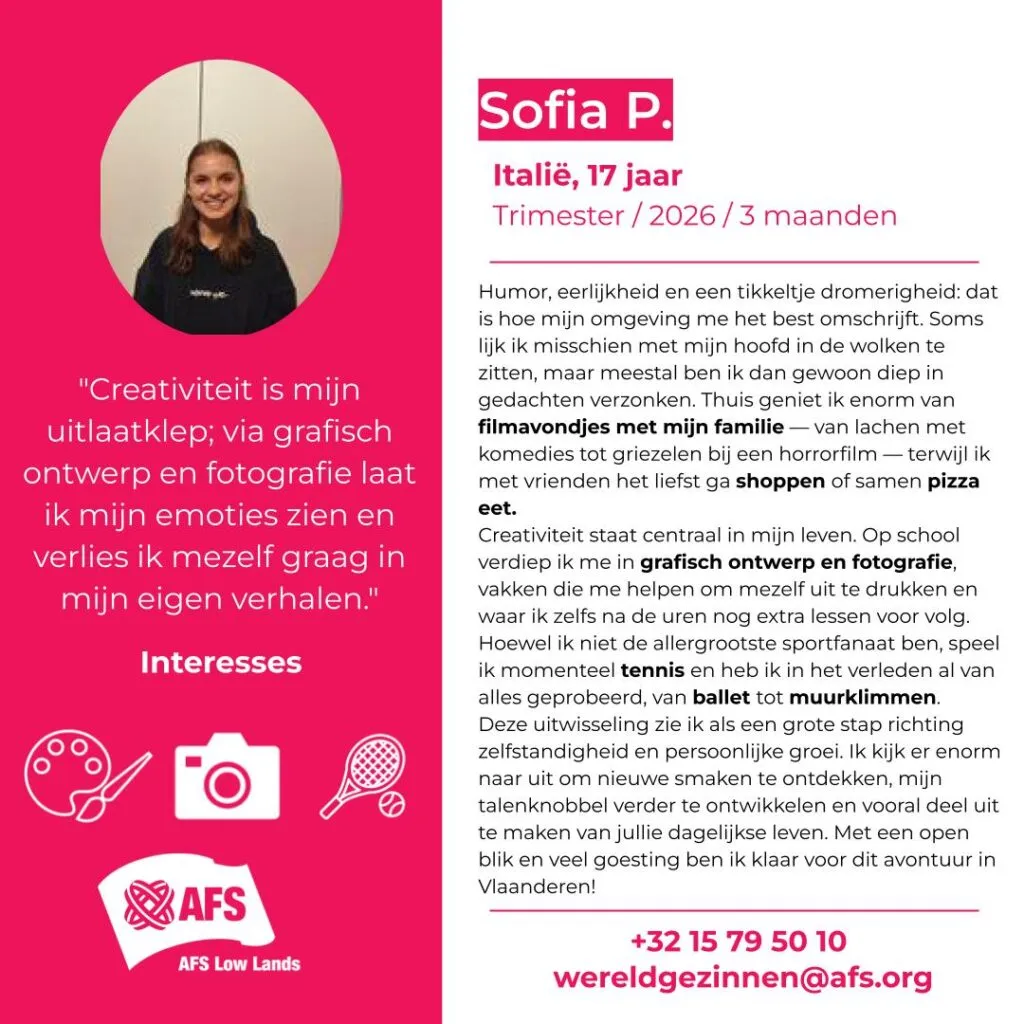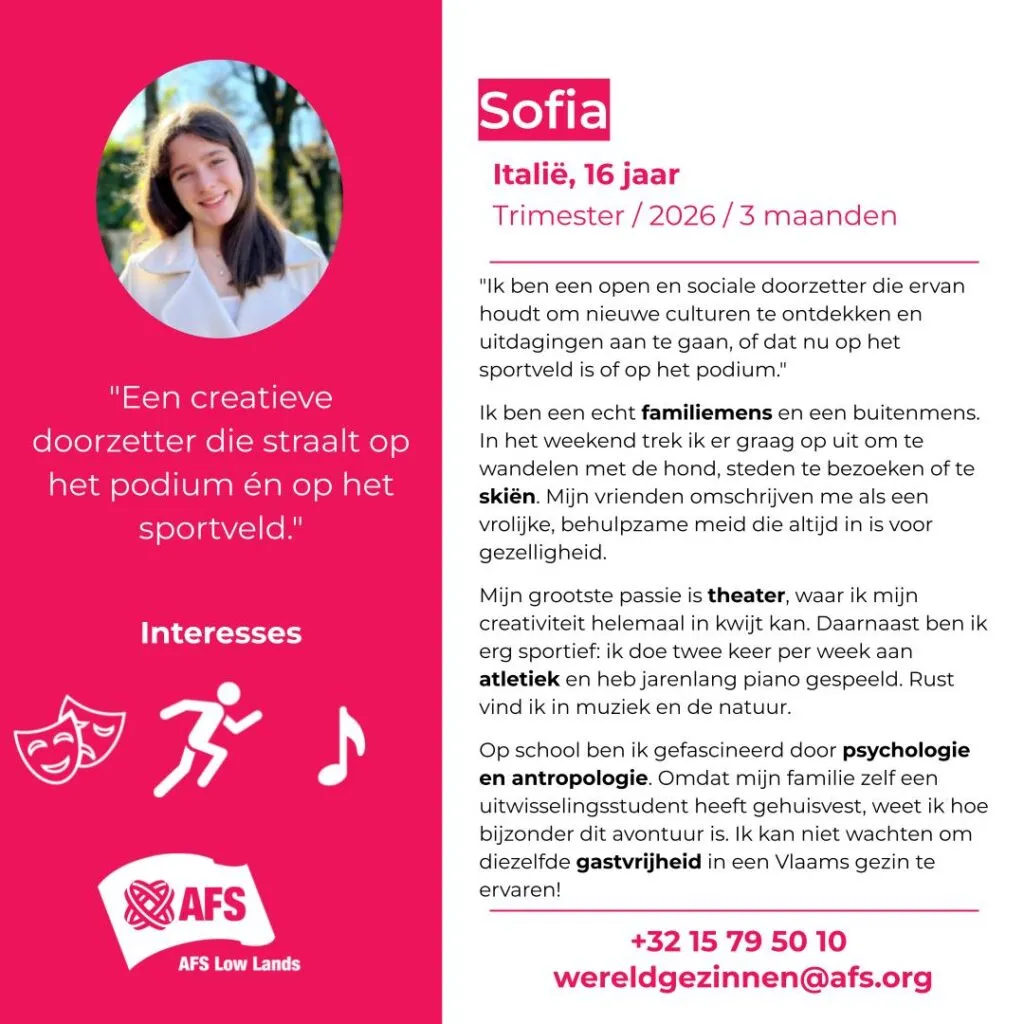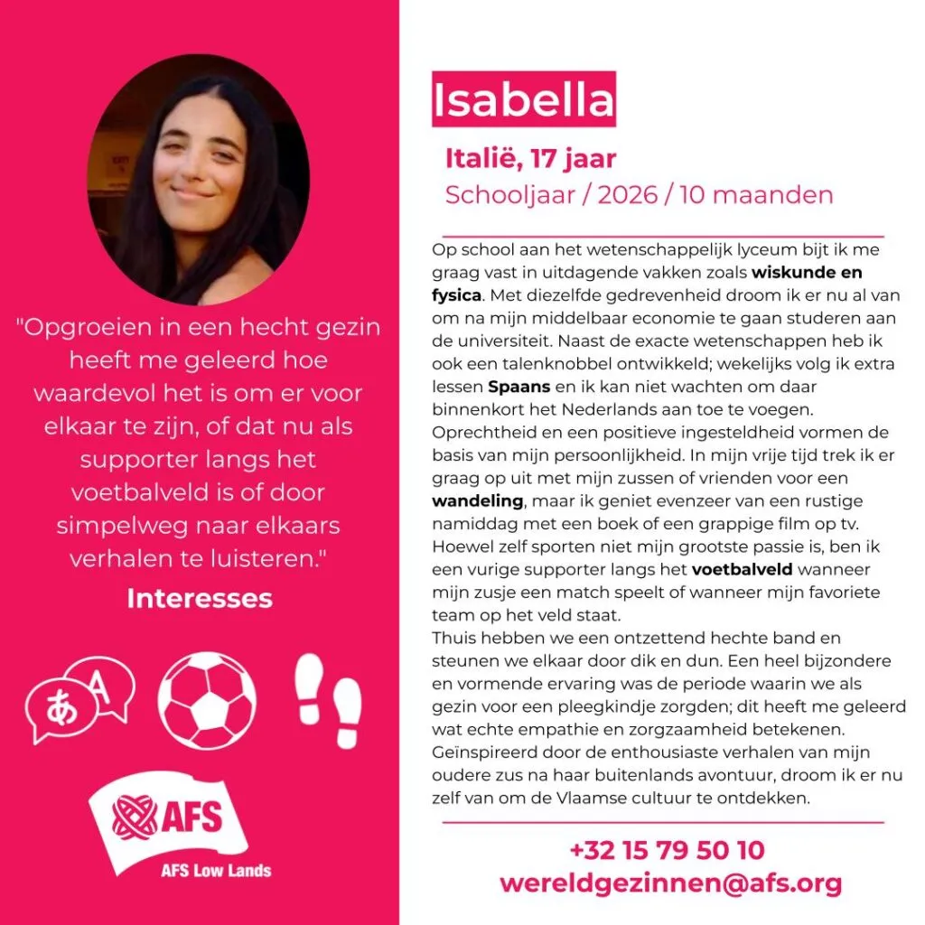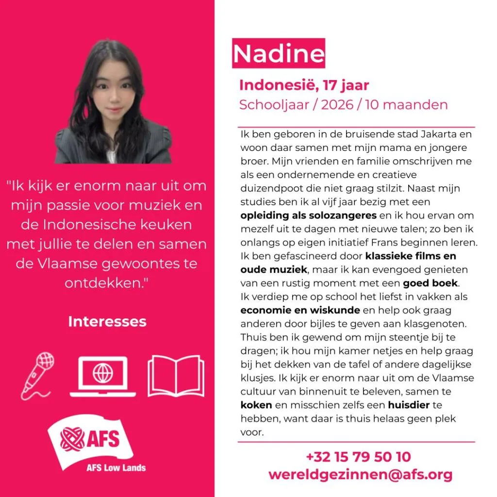 Enthousiast geworden? Neem contact op met het AFS-kantoor in Vlaanderen via 015/79 50 10 of [email protected].