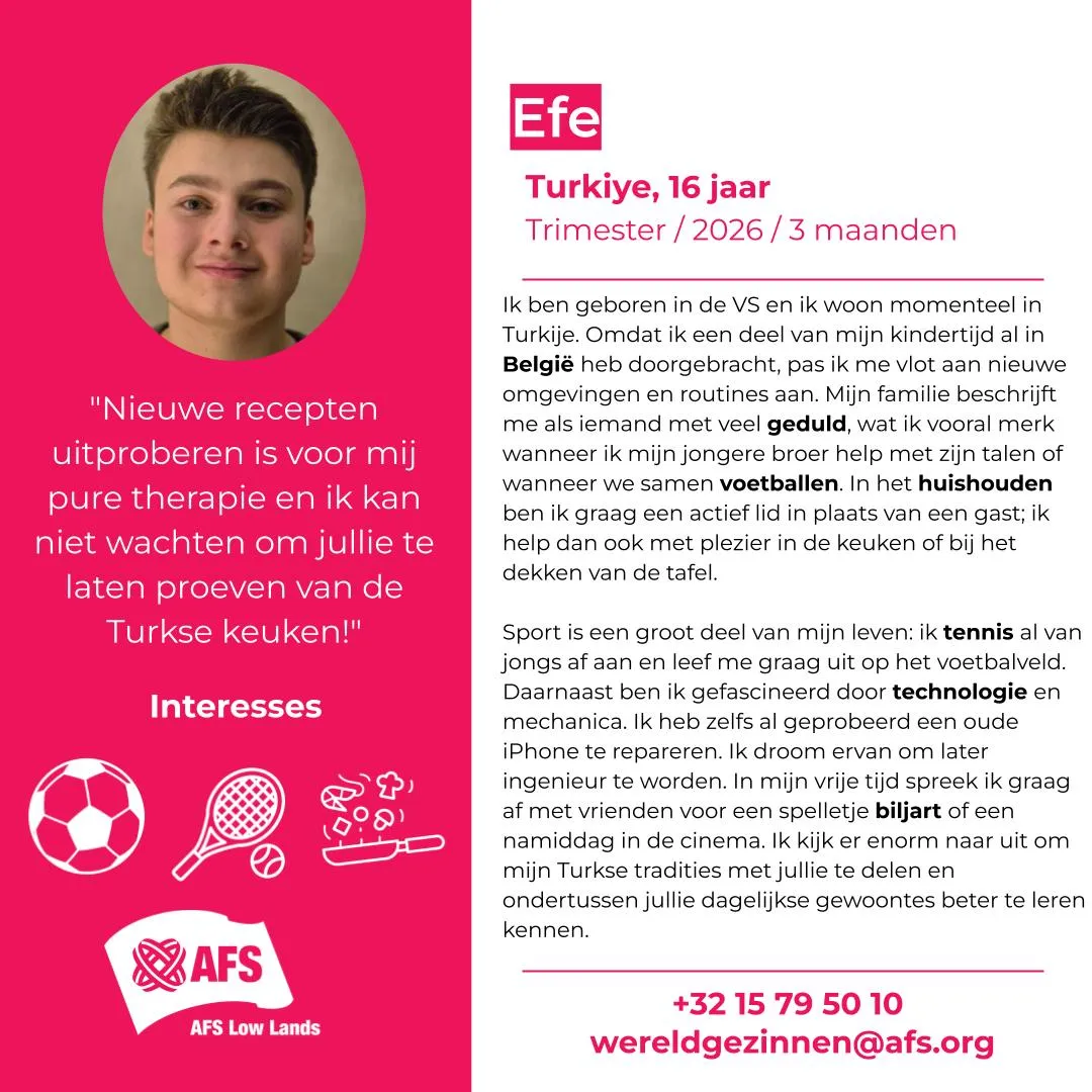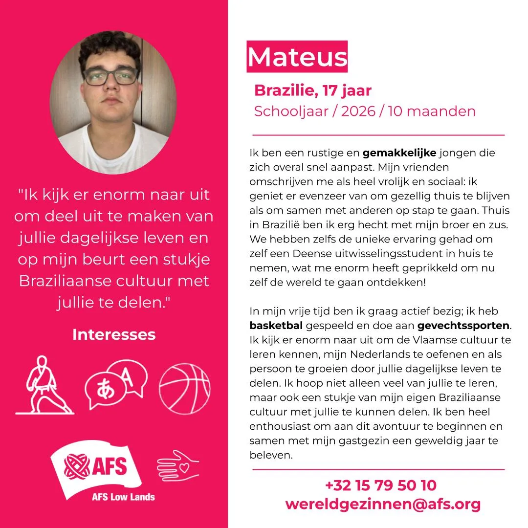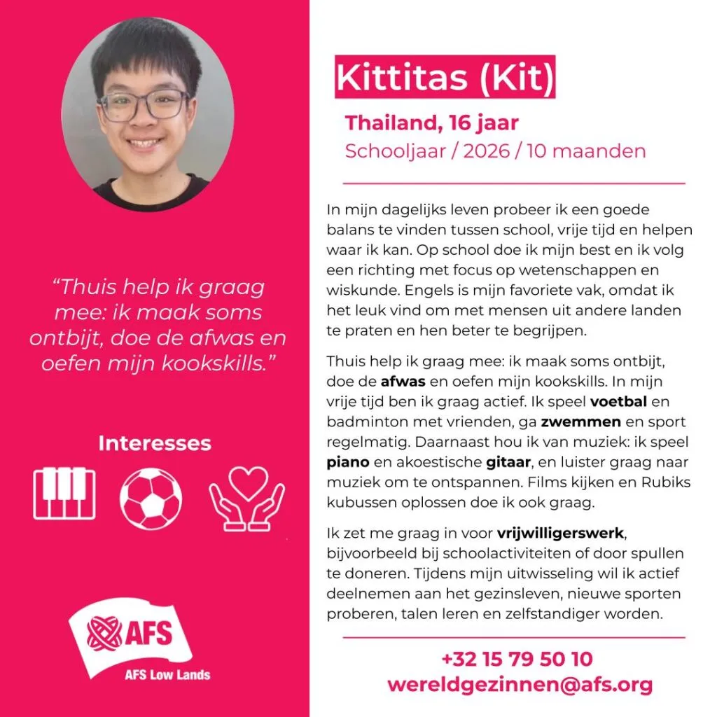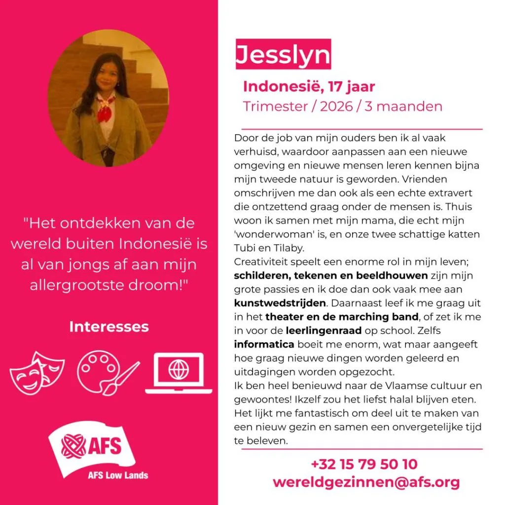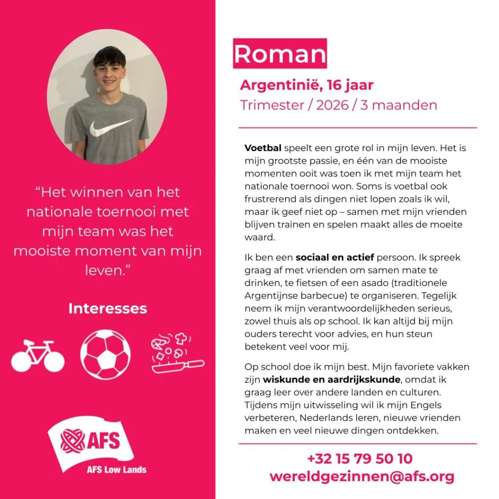 Enthousiast geworden? Neem contact op met het AFS-kantoor in Vlaanderen via 015/79 50 10 of [email protected].